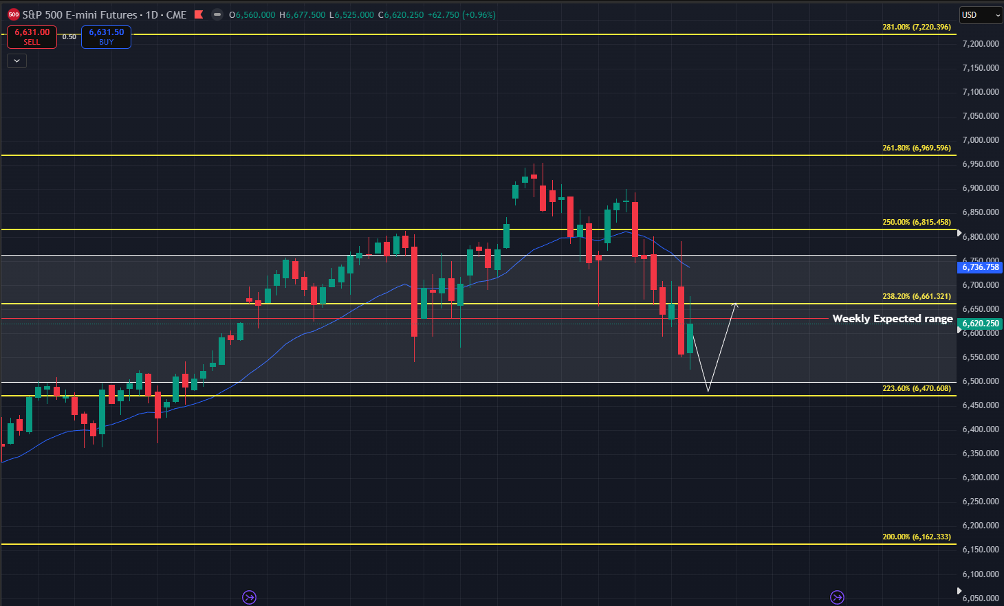 This is a week where traders need to respect the fact that equities closed under their weekly expected ranges while volatility closed above theirs. That combination reflects forced selling, forced hedging, and structural pressure that does not unwind in a single day. Add to that a short week with thinner liquidity, and you get a scenario where the first move of the week often dictates the entire directional drift.