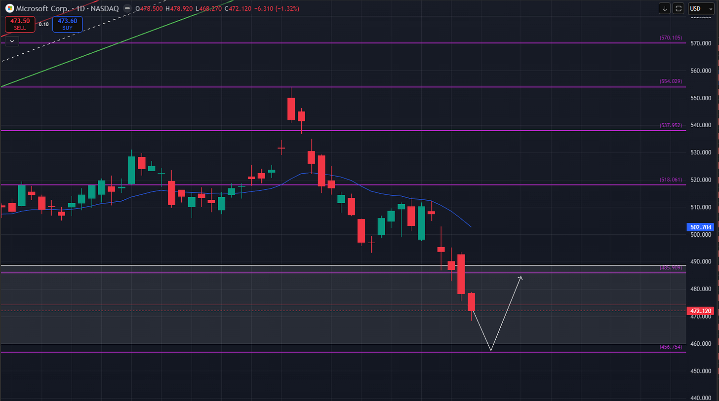 My stance remains the same: all rips on Microsoft during the second half of 2025 have been sells, and that view continues to pay. This week I expect a test near 458, followed by a twenty to thirty point rip into the 480–485 zone, which sets up a short-term long swing, not a long-term reversal.