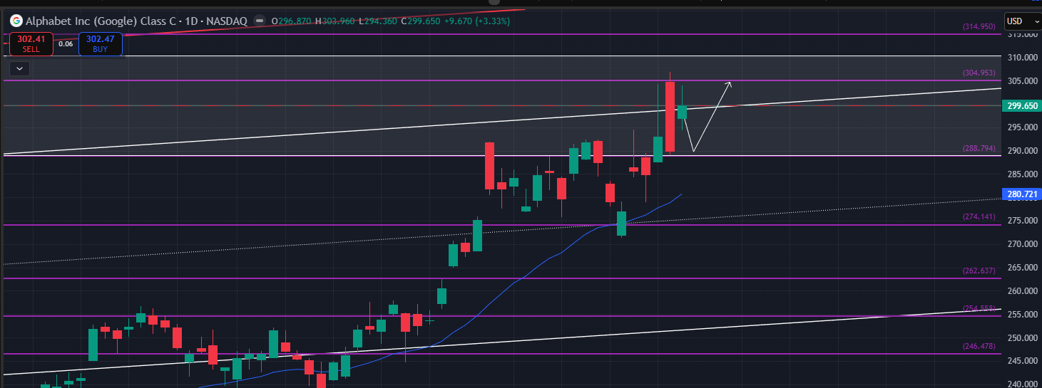 GOOG rejected perfectly from 304.95. I expect a sweep of the 288 level and then a move back toward 300. If the sweep happens with a strong reclaim, it becomes one of the cleaner longs of the week.