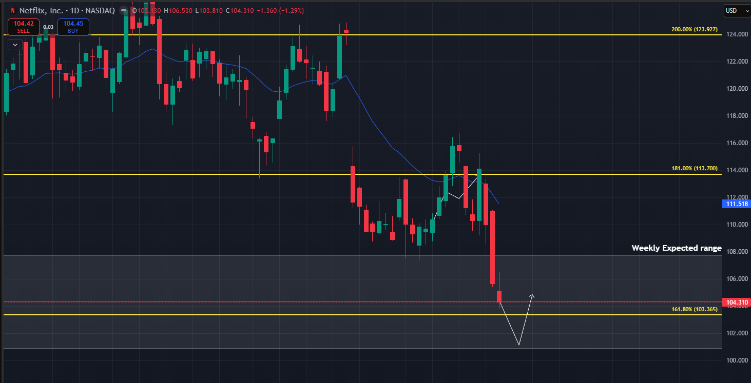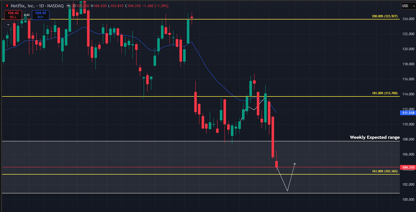 NFLX should trend lower into Wednesday, then see a small recovery into Friday. I am not taking trades here yet until structure cleans up.